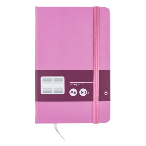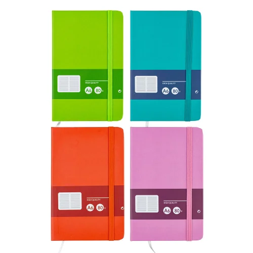 A6 notebook with hardcover. Elastic closure, ribbon divider. Size: 148 x 105 mm Color: assorted 80 sheets