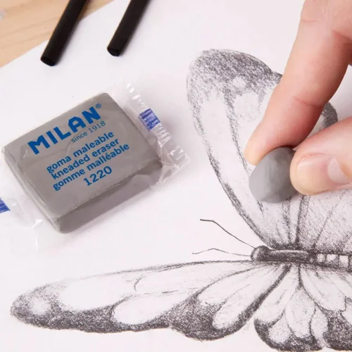 Milan 1220 soft bread eraser for erasing made of unvulcanized synthetic rubber.