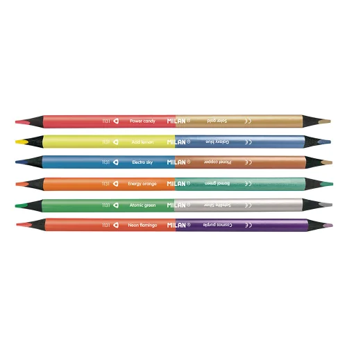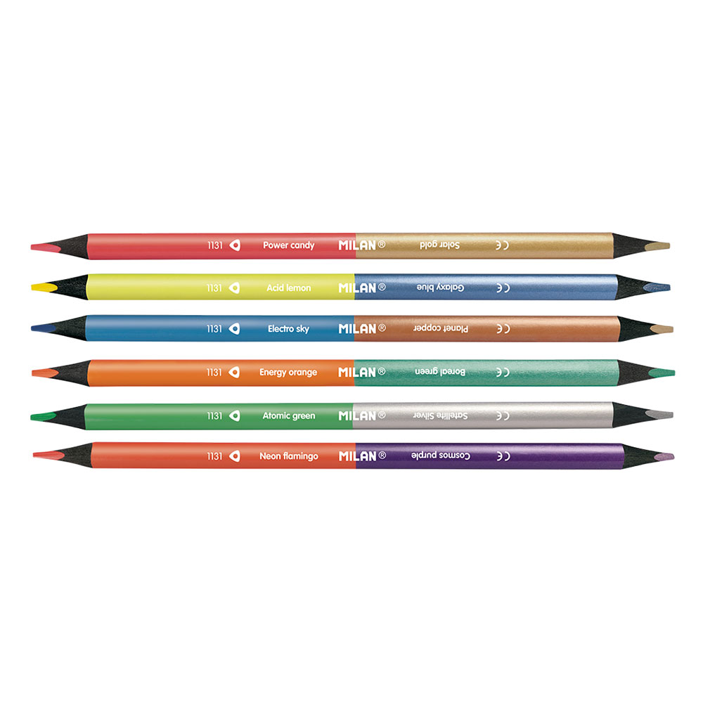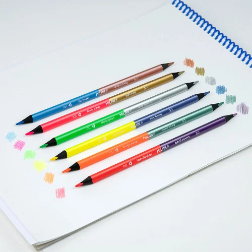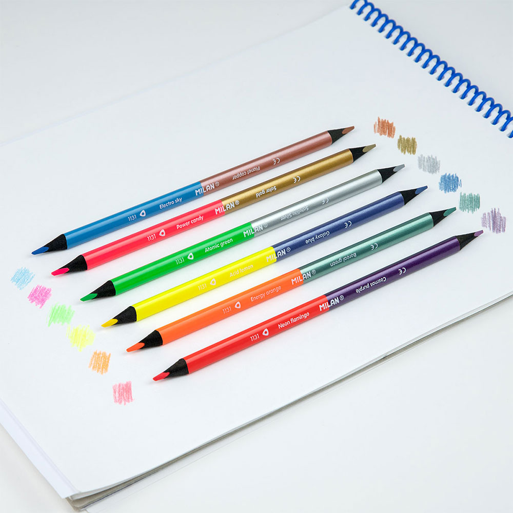 Add shine and neon energy to your drawings with the unique set of double-sided colored pencils from the Spanish brand Milan.