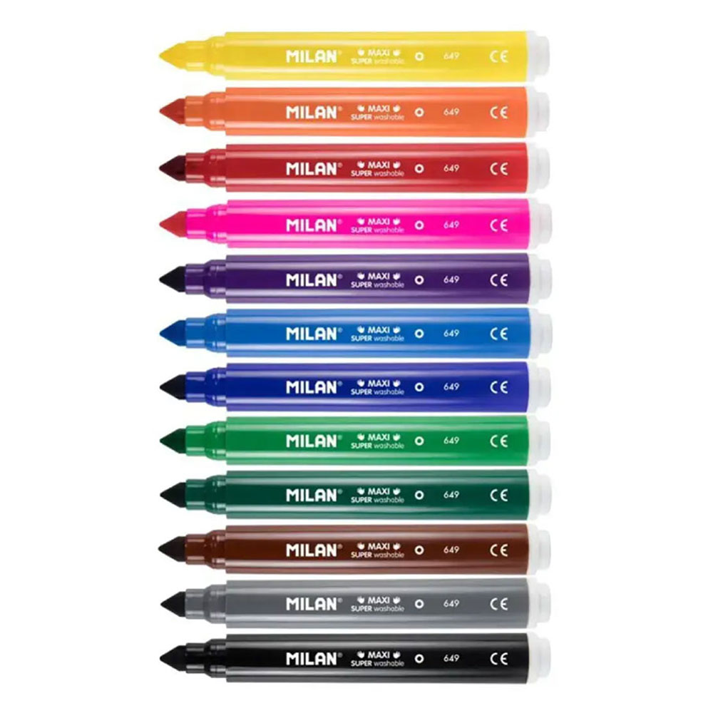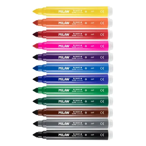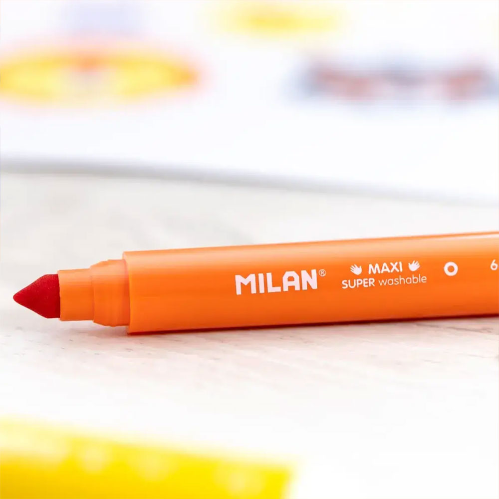 Milan Maxi Markers are designed to be your child's first professional tool. With their thick body, they are extremely easy to grip for children who are still developing their coordination. But the best thing for parents is the Super Washable technology – the ink is designed to be washed off extremely easily from skin and clothes with just water, without leaving stubborn stains.