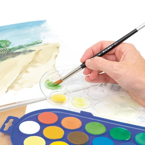 Discover the magic of color with the classic Milan watercolor set. Designed specifically for young and old artists, this set offers rich pigments and exceptional ease of use. Each paint is designed to dissolve quickly when in contact with water, ensuring smooth and beautiful application on paper.