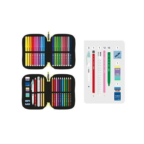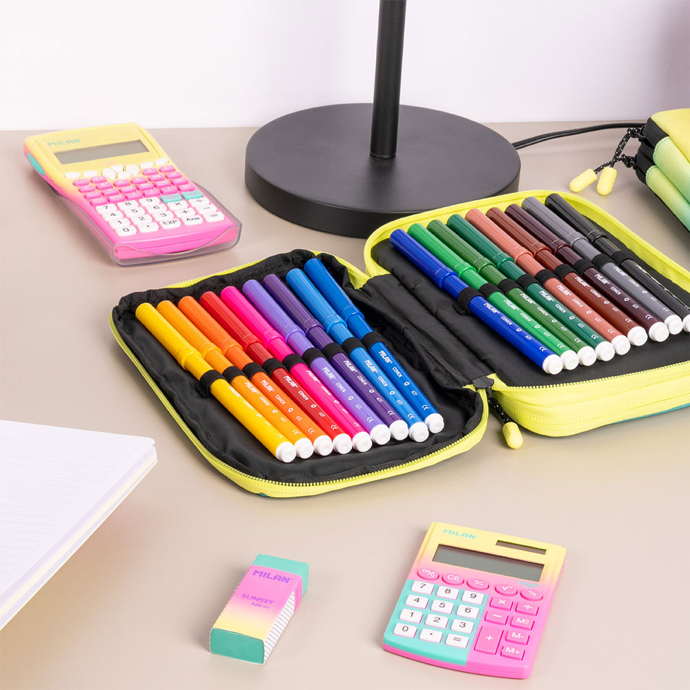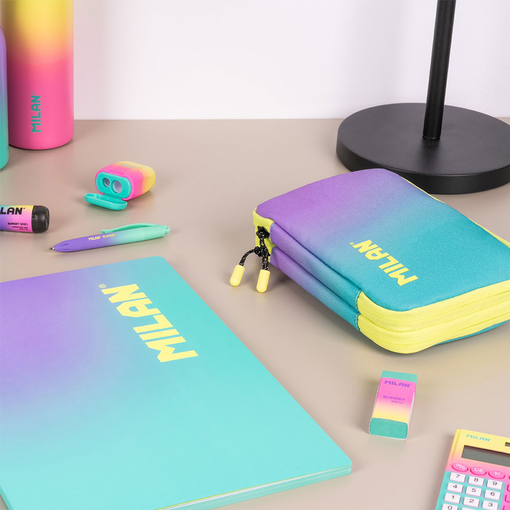 Organize the school day with impeccable style and quality with a complete set from Milan's Sunset collection! Inspired by the iridescent colors of the sunset, the model in turquoise and pink shades combines functionality with modern aesthetics. Compact but extremely functional, it comes fully equipped with high-quality Milan supplies, ready to use from day one.