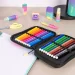(18 felt-tip pens, 12 colored pencils, 1 HB pencil, 1 ballpoint pen, 1 ruler, 1 sharpener, 2 erasers)