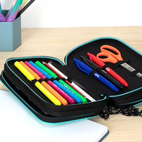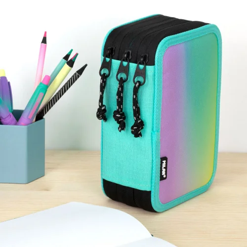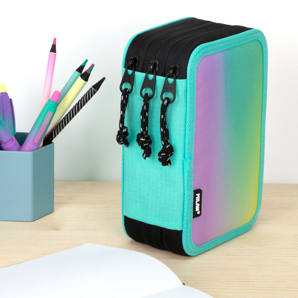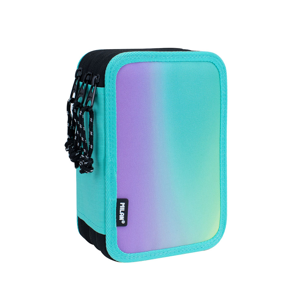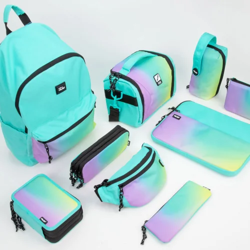 Organize your school day with impeccable style and quality with a complete set from Milan's Sunset collection! Inspired by the iridescent colors of the sunset, this model in turquoise and purple shades combines functionality with a modern aesthetic. Compact yet highly functional, it comes fully equipped with high-quality Milan supplies, ready to use from day one.