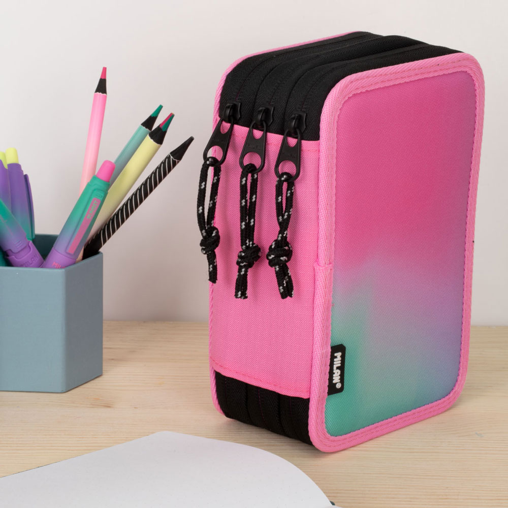 Organize your school day with impeccable style and quality with a complete set from Milan's Sunset collection! Inspired by the magical pink-purple hues of the sunset, the model combines huge storage space with a modern and fresh look. Compact yet highly functional, it comes fully equipped with high-quality Milan supplies, ready to use from day one.