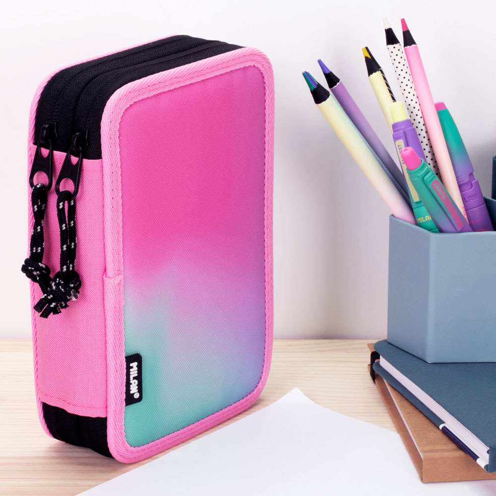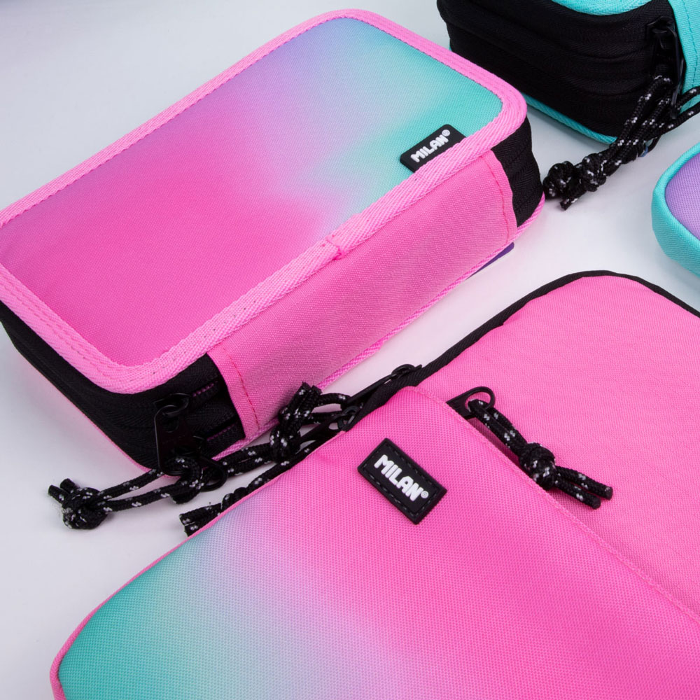 Organize the school day with impeccable style and quality with a complete set from Milan's Sunset collection! Inspired by the iridescent colors of the sunset, the model in turquoise and pink shades combines functionality with modern aesthetics. Compact but extremely functional, it comes fully equipped with high-quality Milan supplies, ready to use from day one.