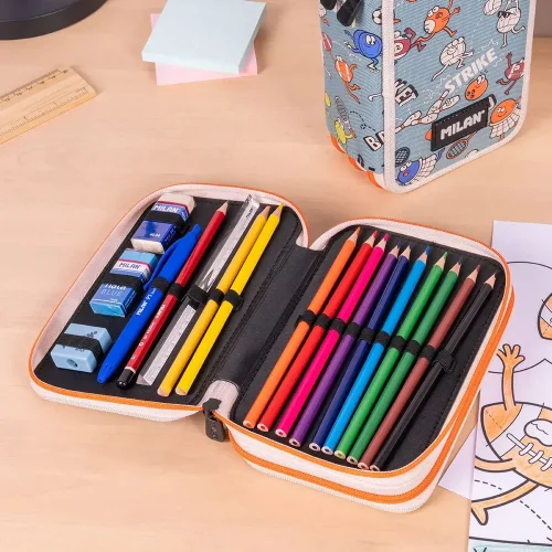 Prepare to win at school with the school bag from the special Sports series by Milan! Inspired by the energy of an active lifestyle and sports, this model combines functional layout with a modern and fresh design. It is designed to provide excellent visibility and easy access to all the necessary supplies during the school day. Compact but extremely functional, it comes fully equipped with high-quality Milan supplies, ready to use from the first day.