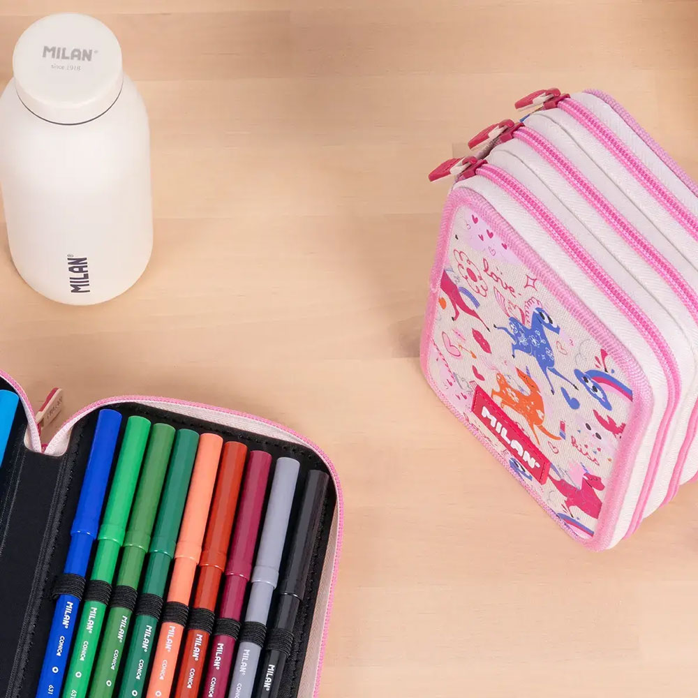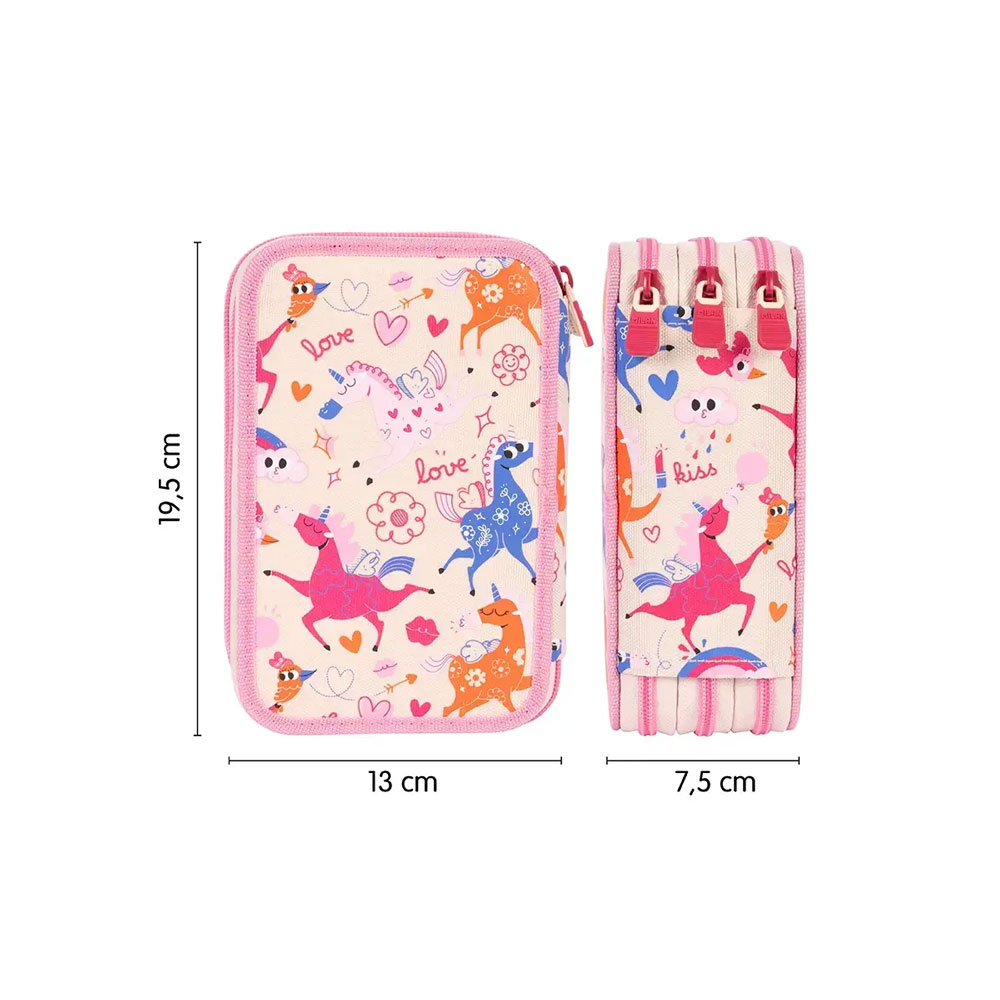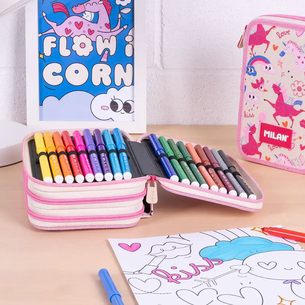 Milan Flowicorn Beige Pencil Case – Maximum organization and magical style in 3 compartments.