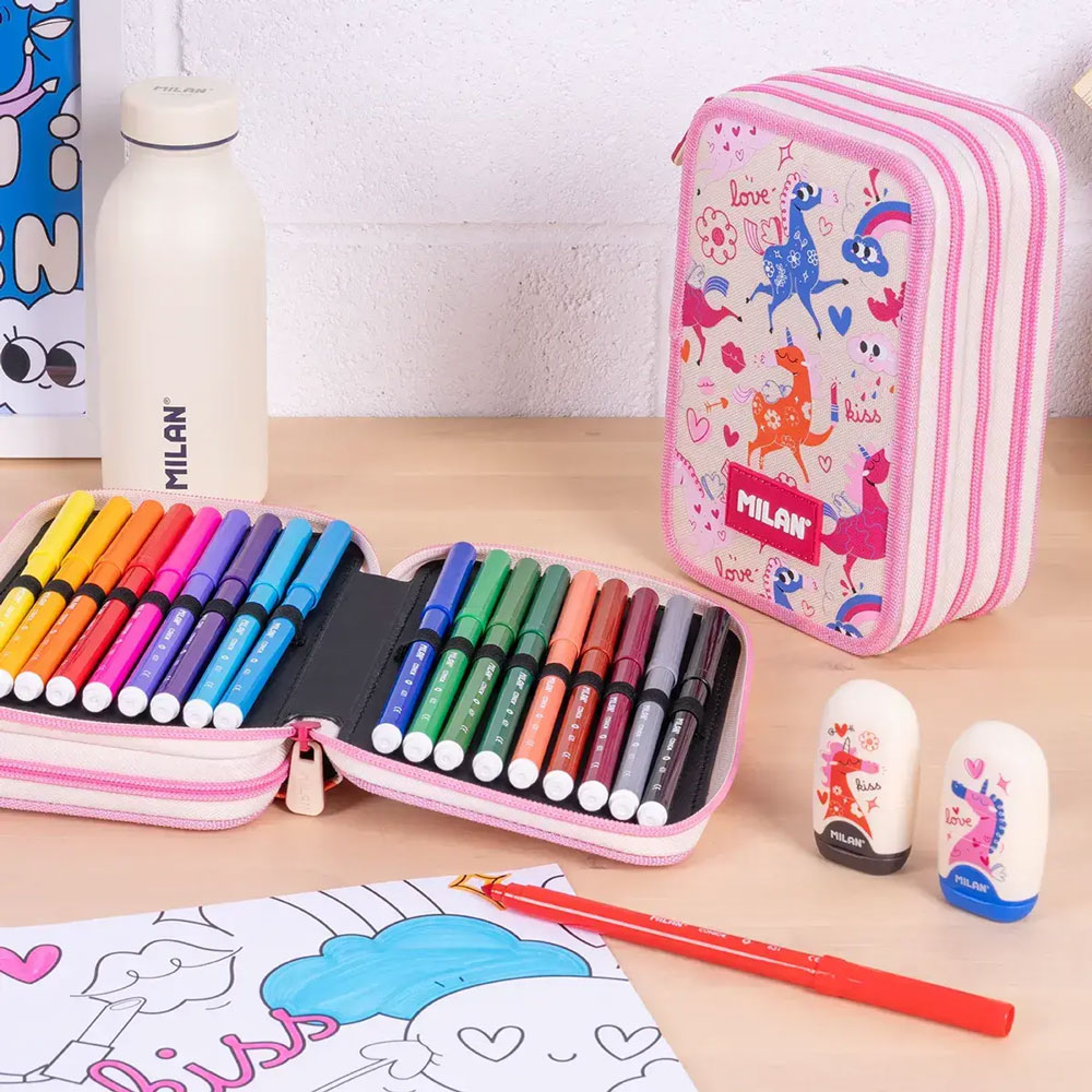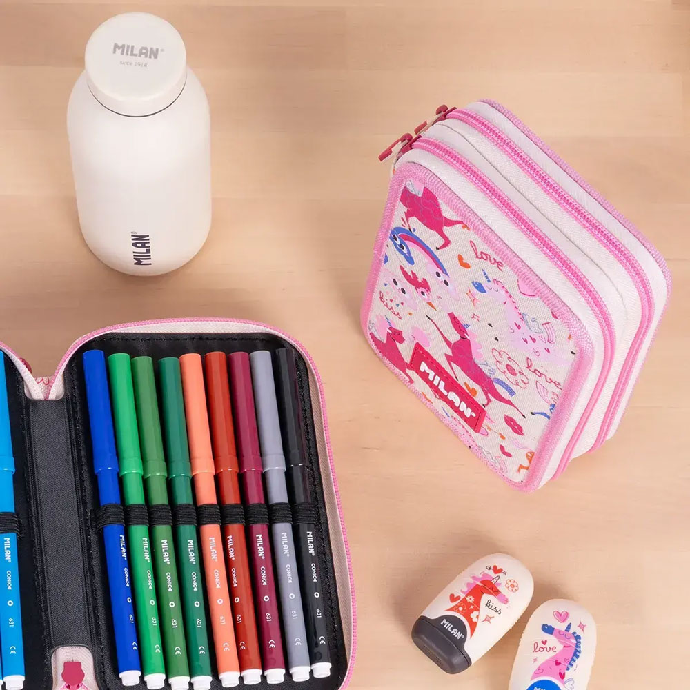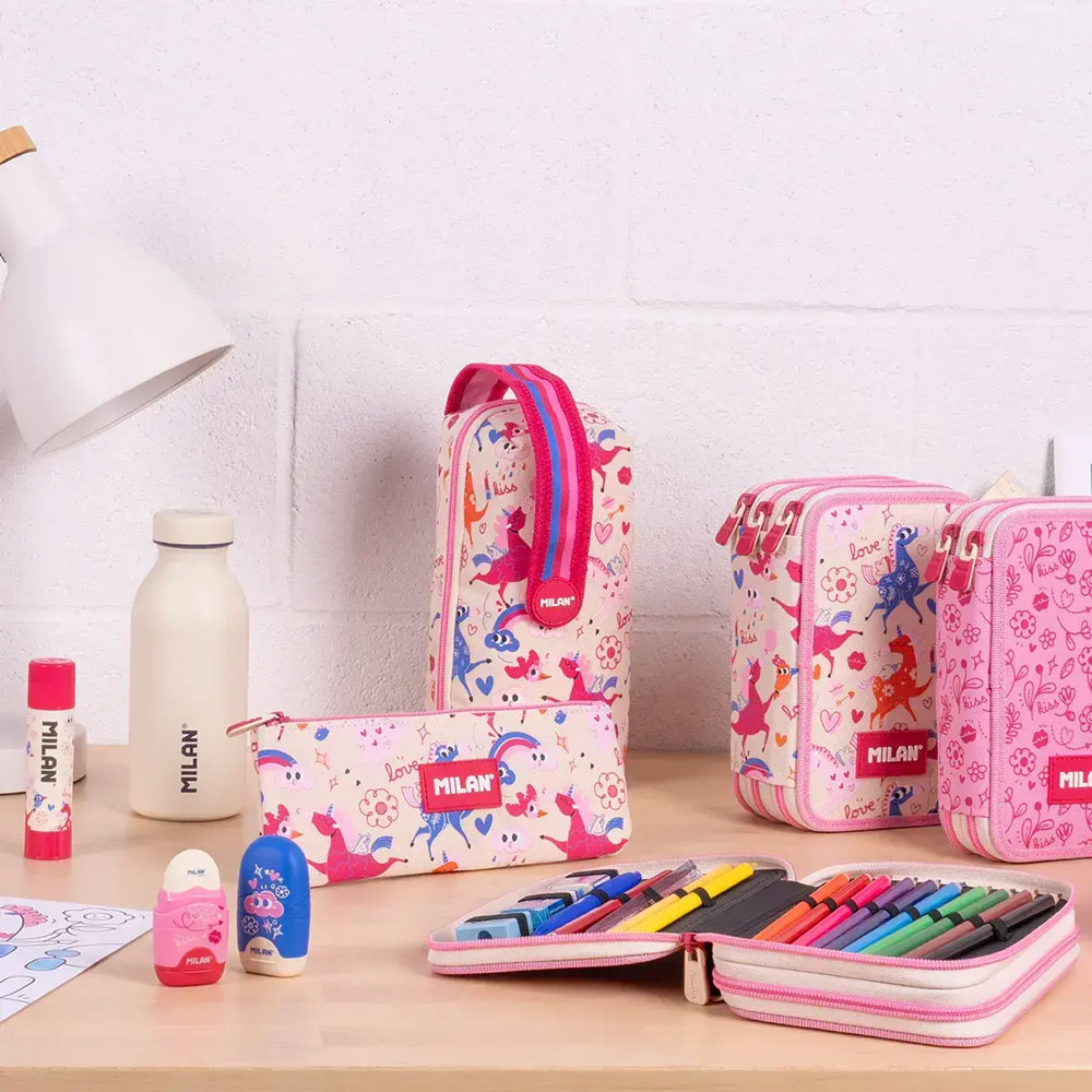 Organize the school day with impeccable style and quality with a complete set from Milan's special Flowicorn series! The model in a delicate beige color combines functional layout with a modern and fresh design. Compact but extremely functional, it comes fully equipped with high-quality Milan supplies, ready to use from day one.