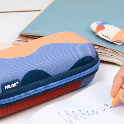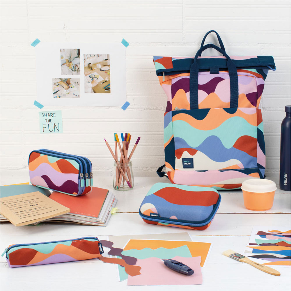 For those looking for security for their tools without compromising on style, we present the semi-rigid oval model from the Fun Multicolour series by Milan. This case is designed to combine the durability of a hard case with the flexibility of a textile accessory. Its design brings the energy of the “Fun“ collection, combining artistic collage elements with a rich color palette.