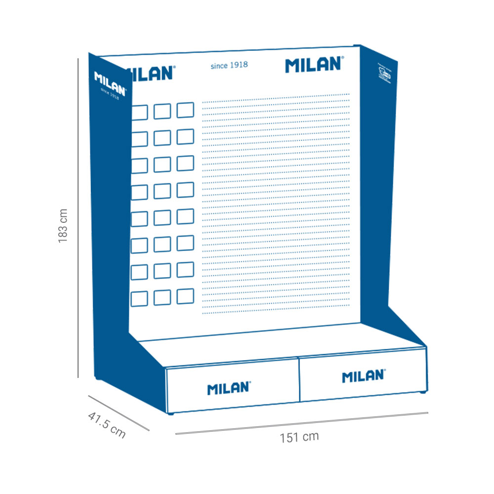 Professionally organize your retail space with the Milan vertical stationary display. Designed for high-traffic areas, this model offers maximum strength and capacity, displaying products in a clear and accessible way.