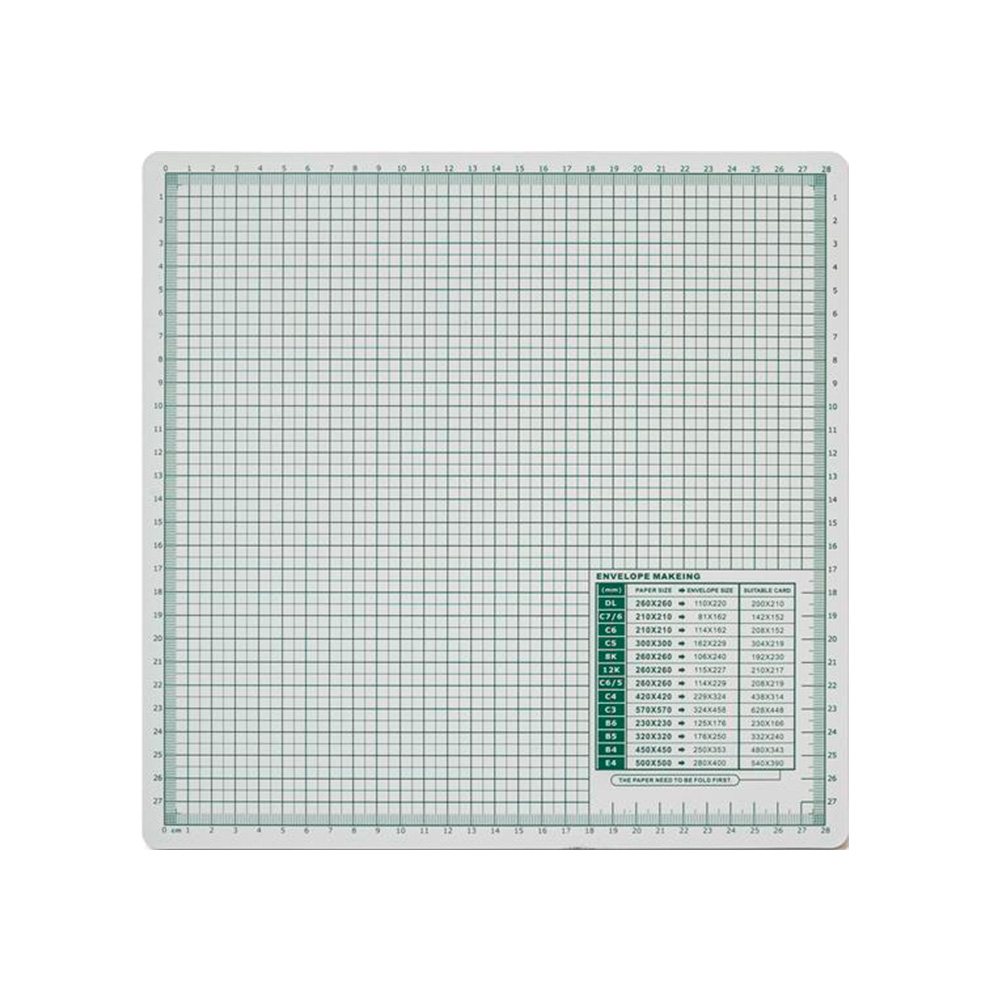 Double-sided board:With a 30 x 30 cm work surface) suitable for scrapbooking papers of standard size.