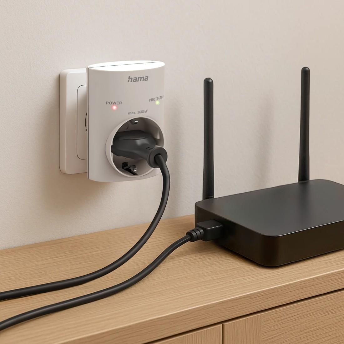 If the red surge protection light is NOT on after switching on, the surge protection does not work and the connected devices are no longer protected.