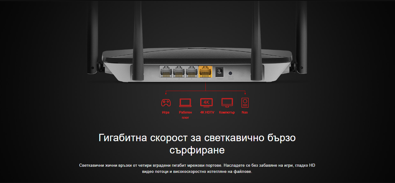 - Gigabit ports - lightning-fast connections for wired devices, including game consoles, STBs, smart TVs and more